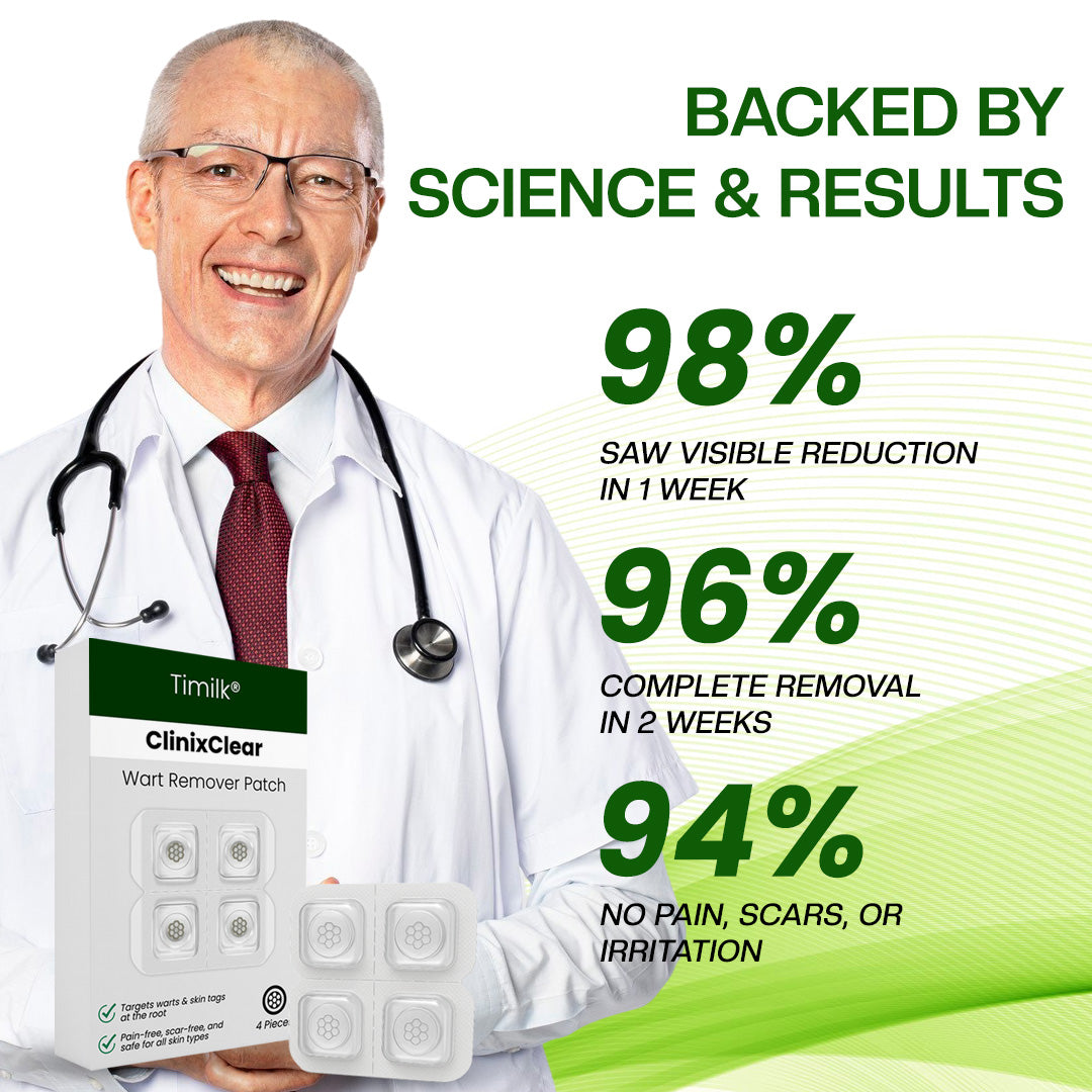 Join over thousands of people who’ve transformed their skin with Timilk® ClinixClear Wart Remover Patch — your go-to solution for clear, confident skin!